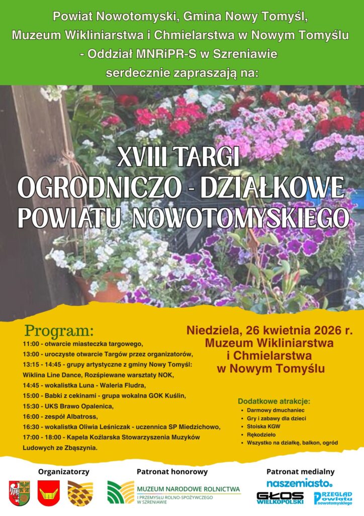 Muzeum Narodowe Rolnictwa i Przemysłu Rolno-Spożywczego w Szreniawie wraz ze swoim oddziałem – Muzeum Wikliniarstwa i Chmielarstwa w Nowym Tomyślu zaprasza na kolejną edycję wyjątkowego święta miłośników roślin i ogrodnictwa.